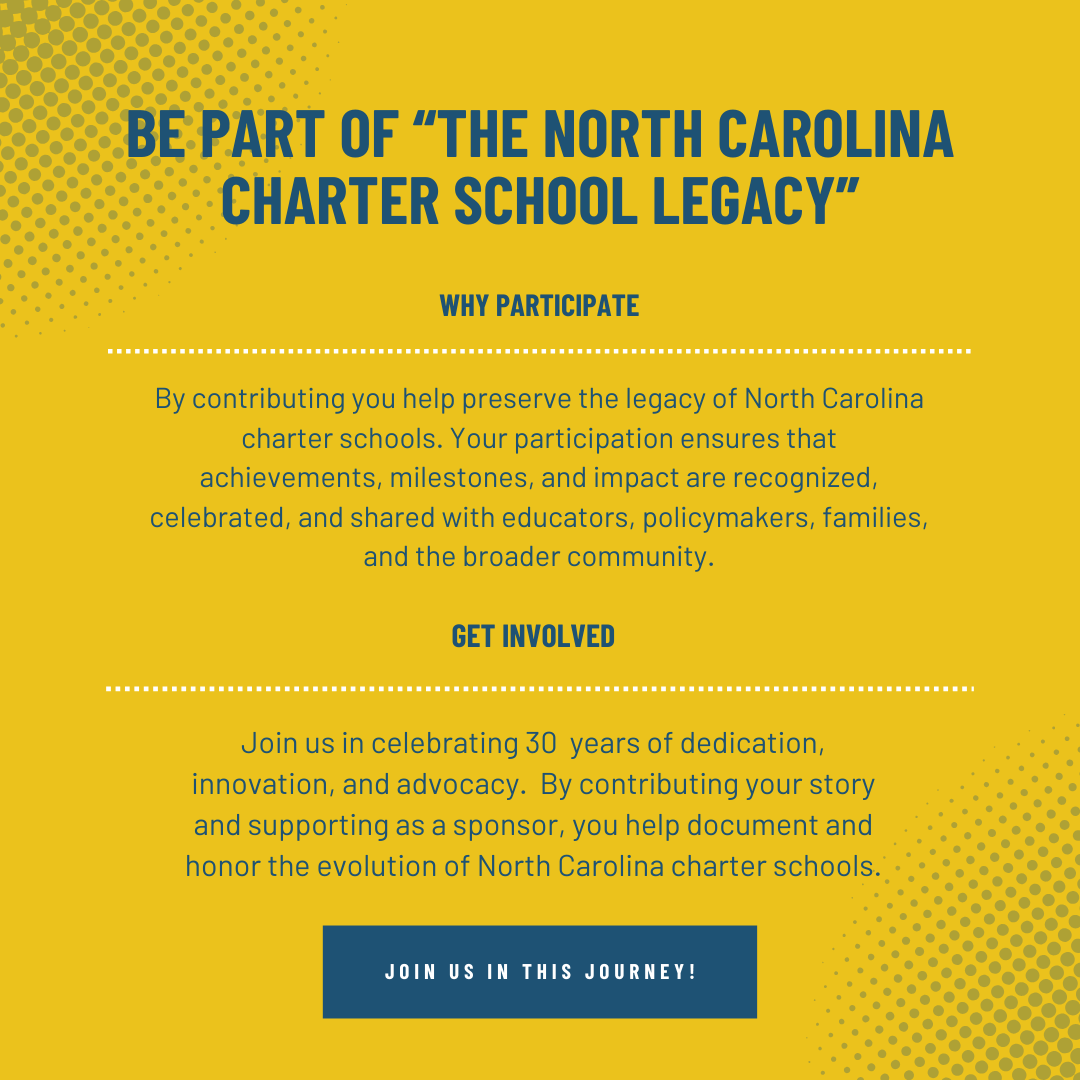 With your help, we can ensure that charter school autonomy is protected, that charter students have equal access to all levels of funding, and that charter school-interests are part of policy dicussions and decisions. And most importantly, we can work to ensure that North Carolina families have access to high quality schools of choice.
